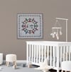 30 x 30 inch baby blanket / wallhanging (perfect for nursery decor). 14 pages of instructions, complete with full size pattern ready to trace and embroider. This embroidery pattern uses only a 'backstitch' embroidery stitch. Instructions are given for use of colored pencil - but this quilt looks great even without coloring the embroidery.