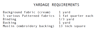 List of fabric and materials